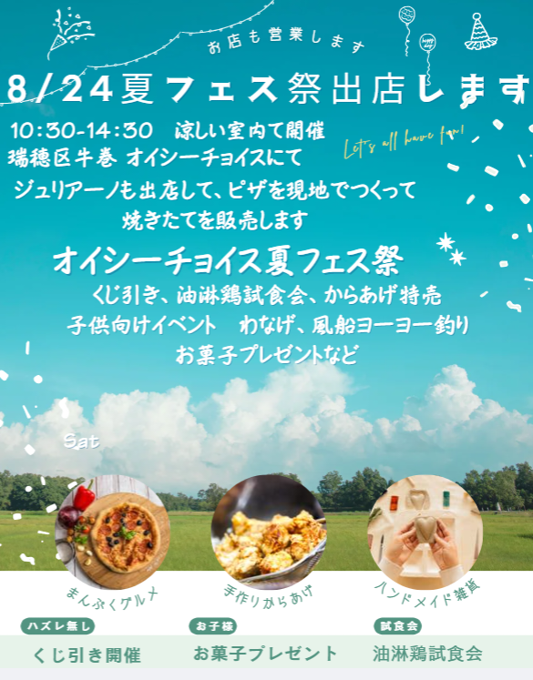 名古屋市緑区徳重イタリアンダイニングジュリアーノ夏フェスマルシェ出店